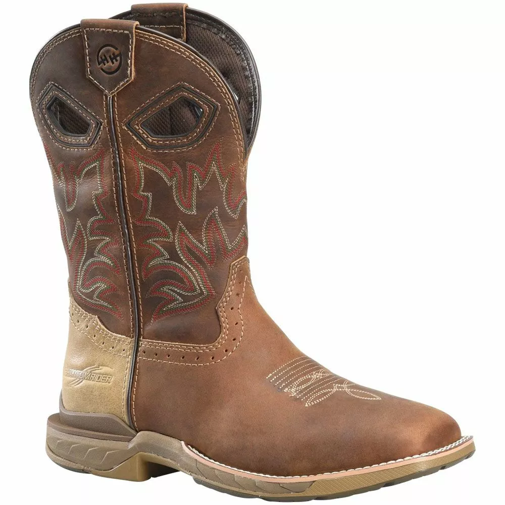 The right pair of mens western boots let you show off your style and exude your hard-working nature. The 11-inch Double-H Veil hits both marks while also being designed for maximum comfort and stability. A leather upper has contrasting colors that add a unique vibe while the shaft features intricate designs and pull holes. From the mesh lining to the cushioned insole and EVA midsole, every stride feels cushioned and flexible.
