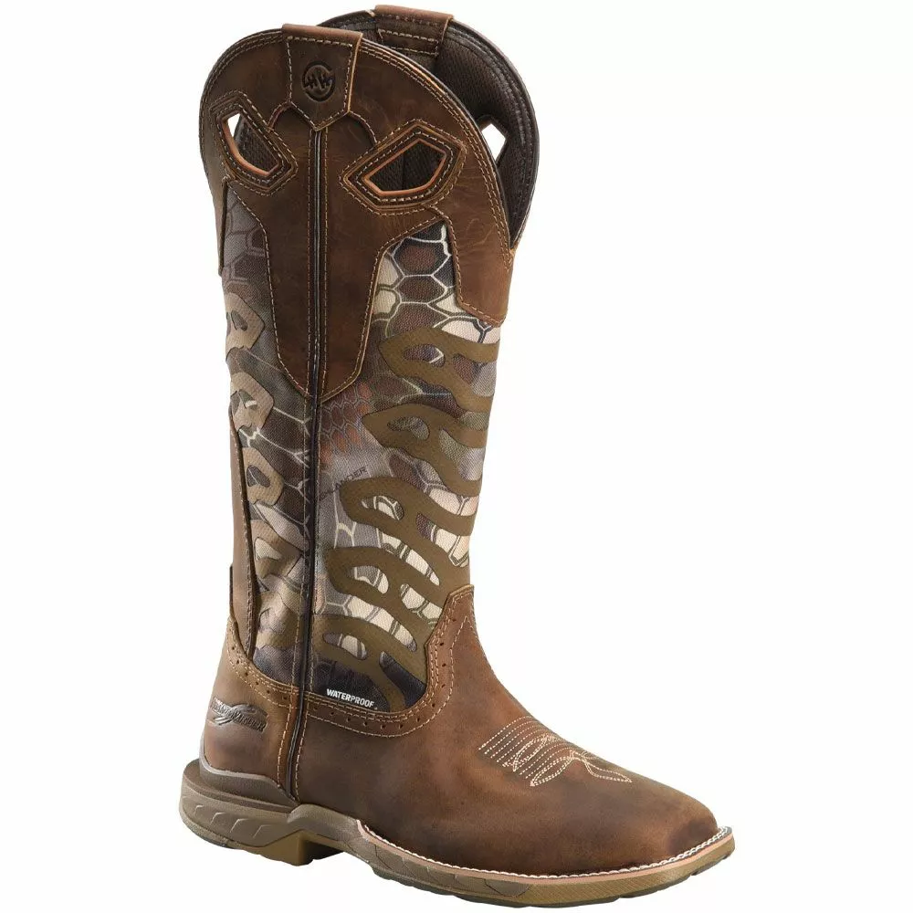 When you want mens western boots that exude bold, rugged confidence, the 16-inch Double-H Waterproof Snake Boot is a unique and comfortable option. The shaft is a waterproof textile with a vibrant snake print that is sure to turn heads. Along with giving the day some flair, you also get to enjoy having comfortable feet thanks to a cushioned insole and footbed, TPU heel stabilizer, shock-absorbing EVA midsole and durable rubber outsole.
