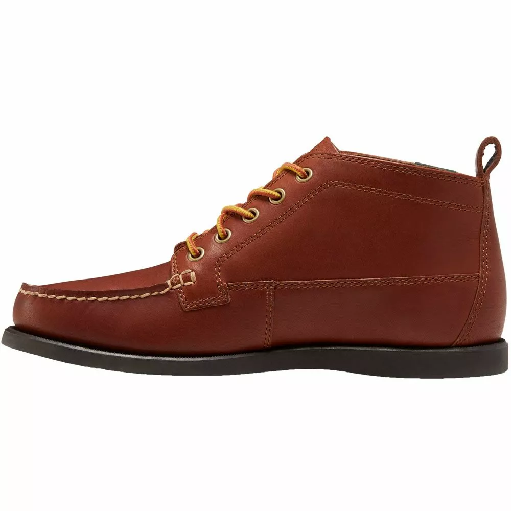 Eastland Seneca Mens Casual Boots. Step into casual style with the Eastland Seneca casual boots. This moccasin inspired boot offers you a stylish finish to your wardrobe. There is a leather upper that features a lace up panel and metallic eyelets, allowing you to have a customized fit. Contrast stitching takes the look of this boot to the next level. A rubber sole provides you with traction and durability. A support shank inside the boot reduces fatigue.