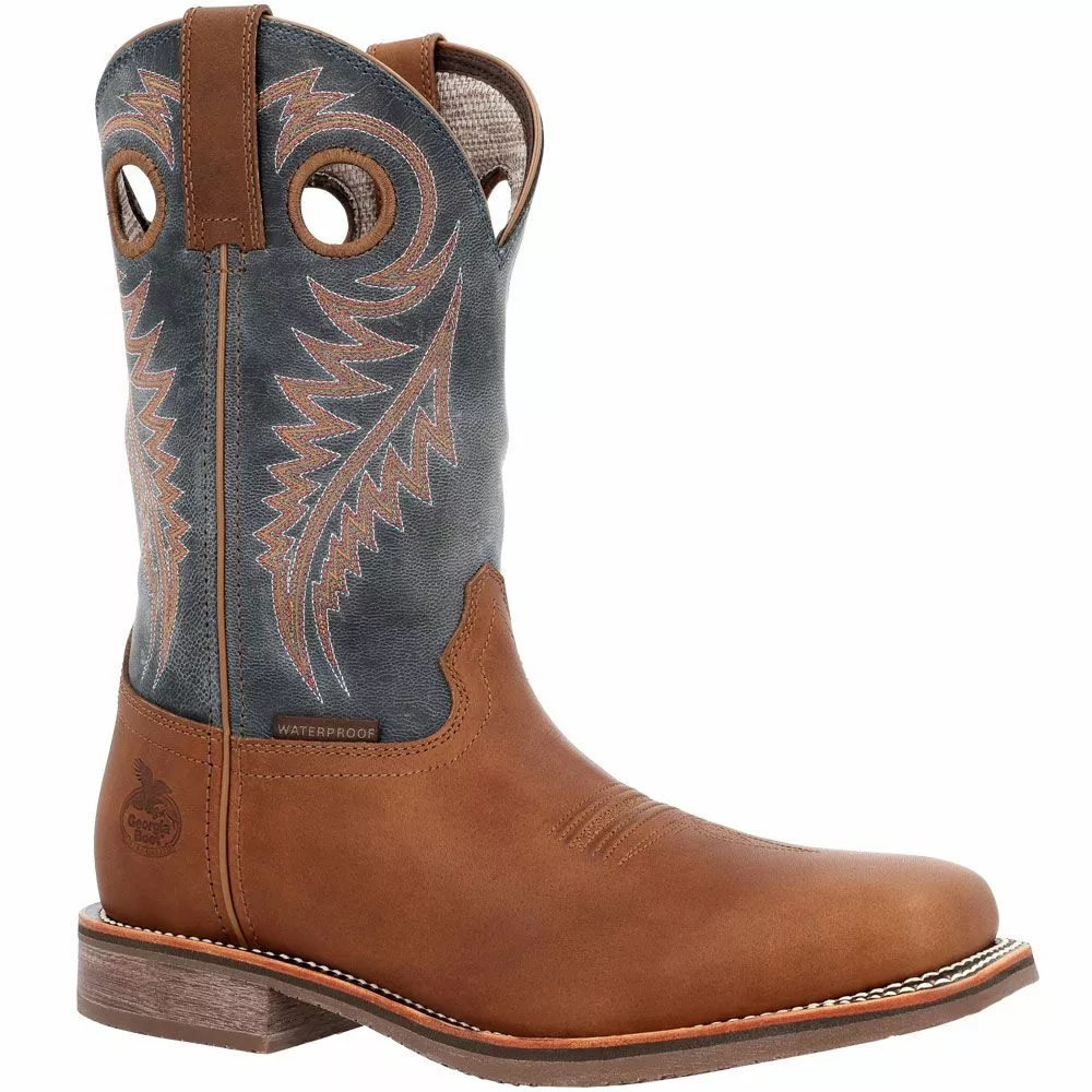 Add style to the day or night with a pair of Georgia Boot Carbo-Tec Elite mens western boots. Along with the classic style you love, you also get the benefits of a modern design engineered to maximize comfort and support. The leather upper is treated to be waterproof and has a stylish square toe. Hidden behind the stylish silhouette is cushioned insole, supportive shank and double-stitching for durability. Exterior features include a durable outsole, abrasion-resistant heel, pull straps and back zipper.