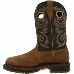 Tough working conditions are no match for these 11 inch waterproof mens western boots. Stylish, functional and protective, they adhere to electrical hazard standards and have an EVA and rubber outsole designed for maximum traction. While working hard, your feet also get the benefit of all-around cushioning and support. Featuring a cushioned insole, flexible EVA midsole and breathable mesh lining. They have a back zipper for easy wear.