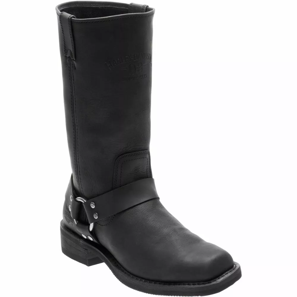 Harley Davidson Bowden Mens Casual Boots. Built with maximum durability combined with classic style, this riding boot will have you hitting the road in quality and comfort. The high boot silhouette is welt constructed with a full grain leather upper featuring a heat and debris resistant design. The durable rubber outsole is built to withstand oil and abrasion. For added stability and style, the design is finished with a harnessed metal detail, squared toe and top pull tabs.