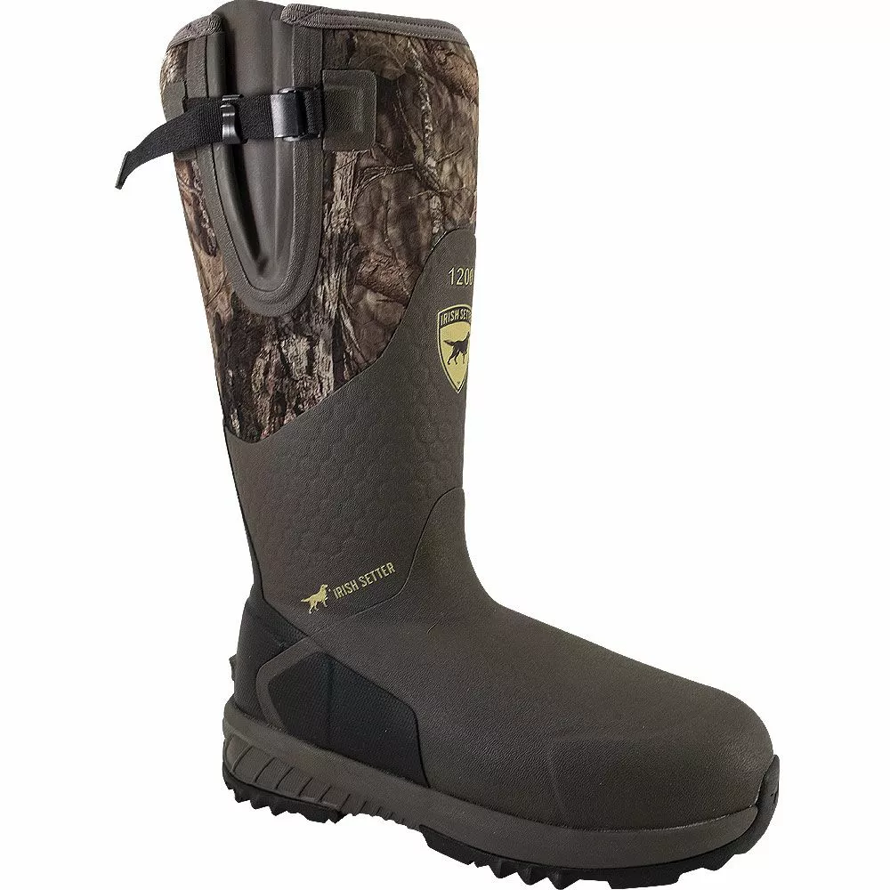 Irish Setter Mudtrek Winter Boots – Mens. No one wants to hunt with wet, cold feet. You can count on Mudtrek mens winter hunting boots from Irish Setter to keep the elements at bay. Snow, rain, and mud are no match for these tough rubber boots. The waterproof upper repels rain while the insulation keeps everything warm and dry on the inside. The Rubber-Mudder outsole gives you the grip you need on wet trails and tree stands.