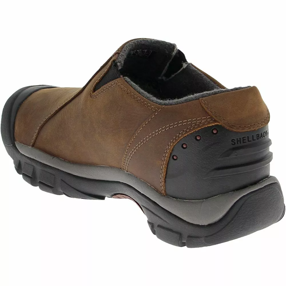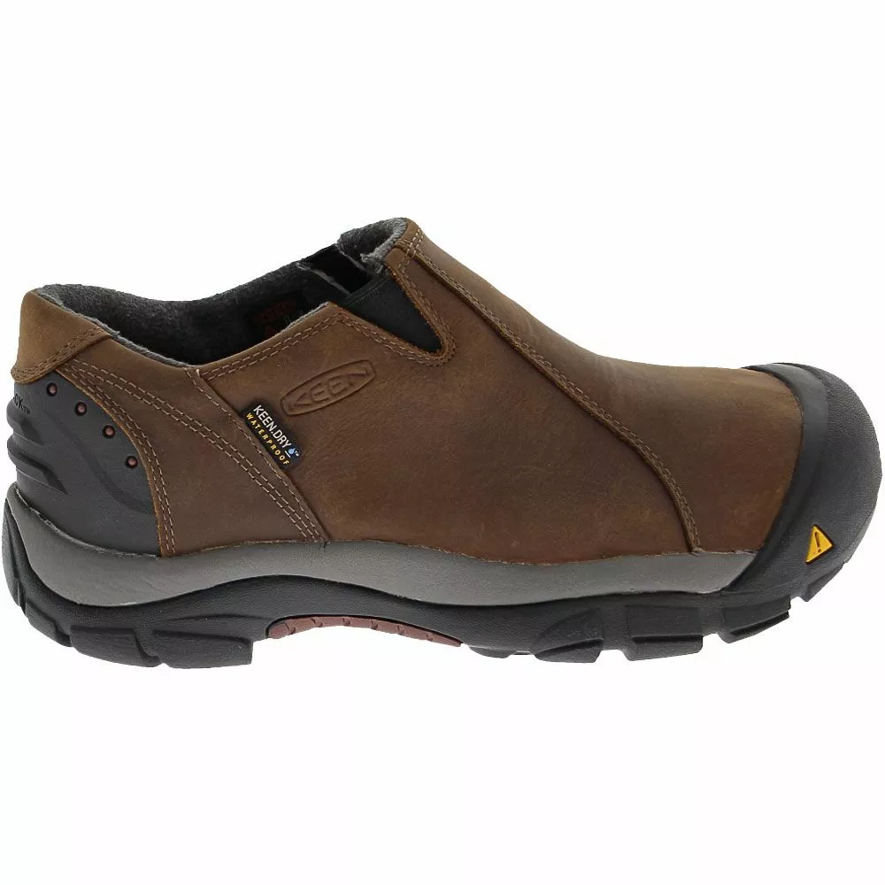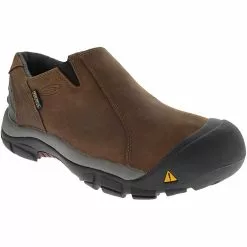 KEEN Brixen Low Men’s Slip On Casual Shoes. Work or play, you’ll do it in comfort with the KEEN Brixen Low waterproof slip on. This shoe features a waterproof nubuck leather upper. Combined with a wool felt lining, 200-gram KEEN.Warm provides lightweight, antimicrobial insulation to keep your feet cozy, the KEEN.Dry waterproof membrane lets perspiration out without letting water in. A compression-molded EVA midsole cushions your steps and the TPU shank and shellback heel support don’t buckle in sketchy terrain. Dual-climate and ice-traction rubber outsoles provide grip and slip resistance, even on icy terrain.