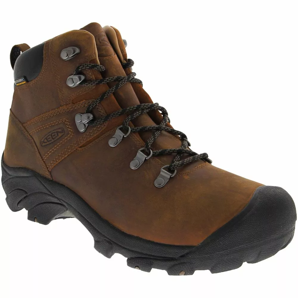KEEN Pyrenees Hiking Boots – Mens. KEEN’s Pyrenees mens hiking boots strike the perfect balance between classic style and modern footwear technology. Waterproof leather uppers and KEEN.DRY PFC-free breathable membranes work together to ensure that your feet stay dry and comfy. Every step delivers dreamy comfort thanks to dual-density compression-molded EVA midsoles and removable metatomical footbeds. The Pyrenees’ outsoles are equipped with 4-millimeter multi-directional lugs for aggressive traction on mud, dirt and other loose surfaces.