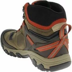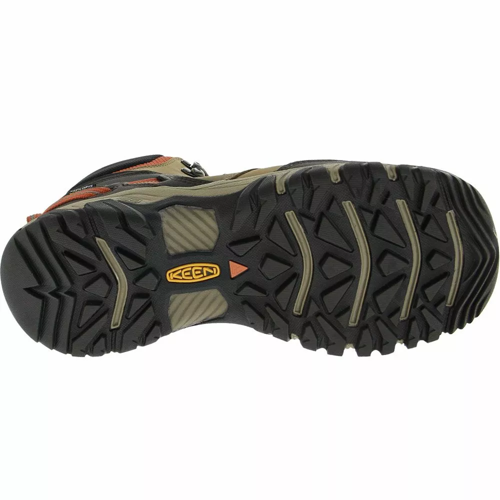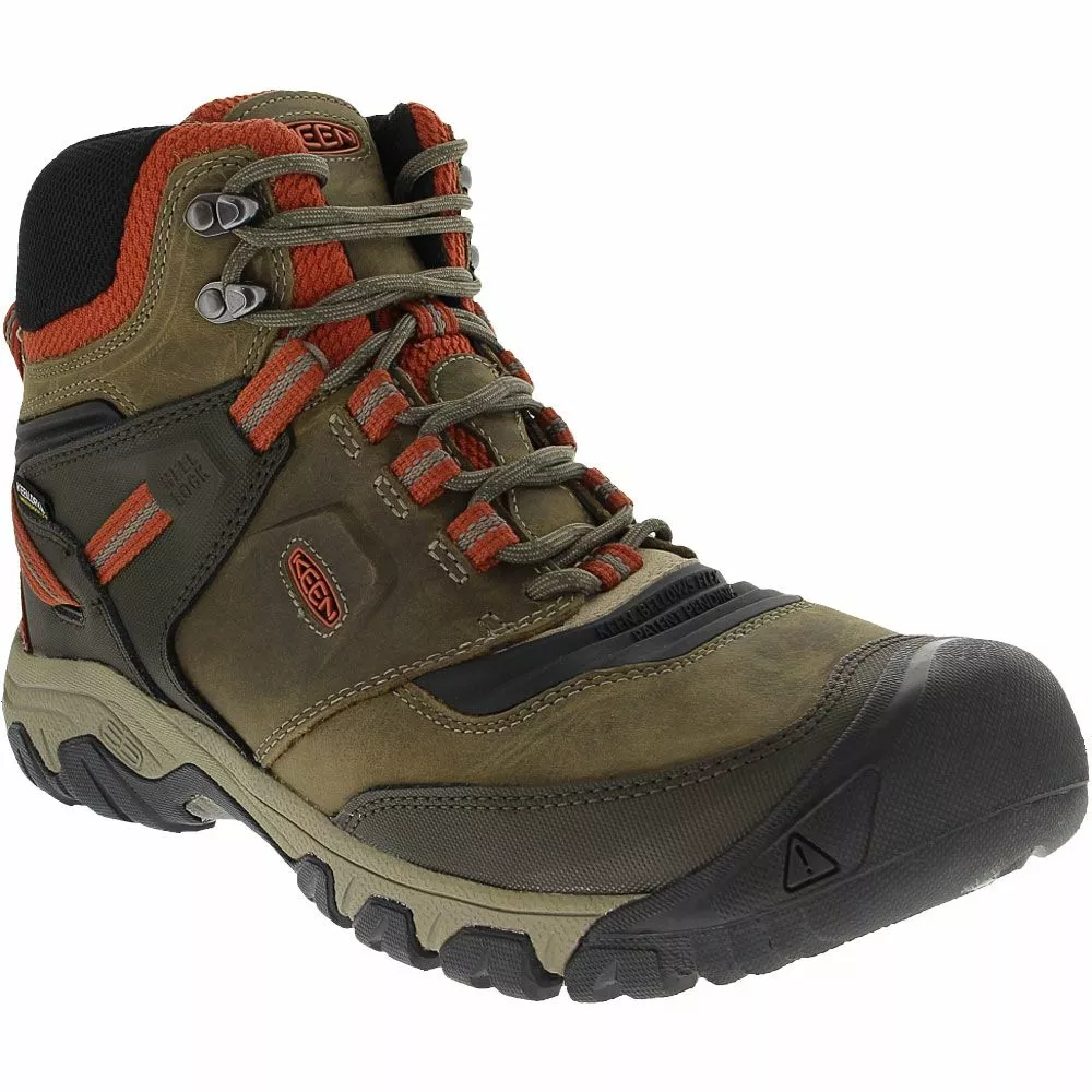 KEEN Ridge Flex Waterproof Hiking Boots – Mens. Prep for outdoor adventure with KEEN’s Ridge Flex Waterproof mens hiking boots. Waterproof leather and performance mesh uppers plus KEEN.Dry breathable membranes keep moisture away in any weather. Quick-dry linings absorb internal moisture, while Eco Anti-Odor technology naturally fights odor causing bacteria for a fresher in shoe environment. KEEN.Bellows Flex allows bending in key areas to prevent weakness and cracking. The Ridge Flex’s all terrain rubber outsoles include 5 millimeter multidirectional lugs for superior traction.