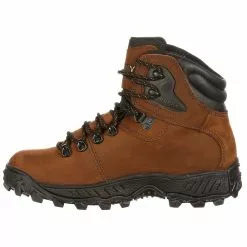 Lace-up durable, flexible comfort with the Rocky Creek Bottom Mens Hiking Boot! GORE-TEX fabric construction creates a windproof, waterproof membrane while maintaining breathability. Removable cushioned insole is added to promote lasting comfort and support throughout the day. LightTrac rubber lug sole allows for lightweight flexibility on any terrain.