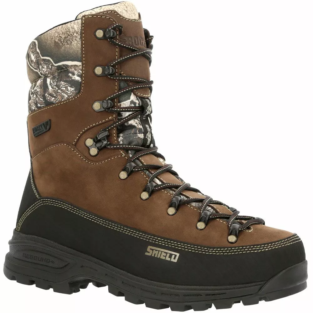 Explore the great outdoors in the Rocky MTN Stalker Pro 800G Insulated Waterproof mens winter hunting boot. Full-grain waterproof leather and 900-denier Cordura nylon uppers are sport SHIELD Guard, reinforcing key areas experiencing more wear and tear. The MTN Stalker Pro locks in warmth with 800 grams of 3M Thinsulate Ultra. Rocky Rebound footbeds cushion your feet as you trek over rough terrain. Vibram’s Mountaineering outsoles provide grip and traction on wet and dry ground.