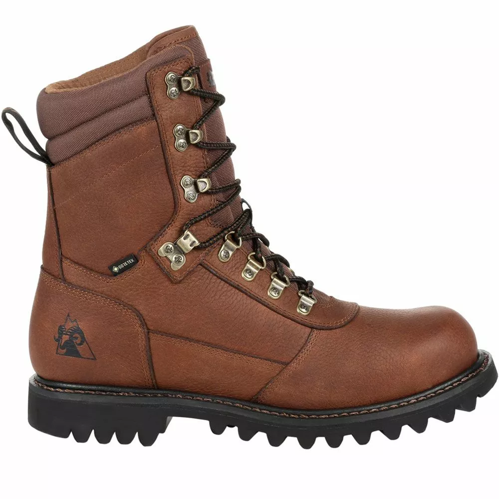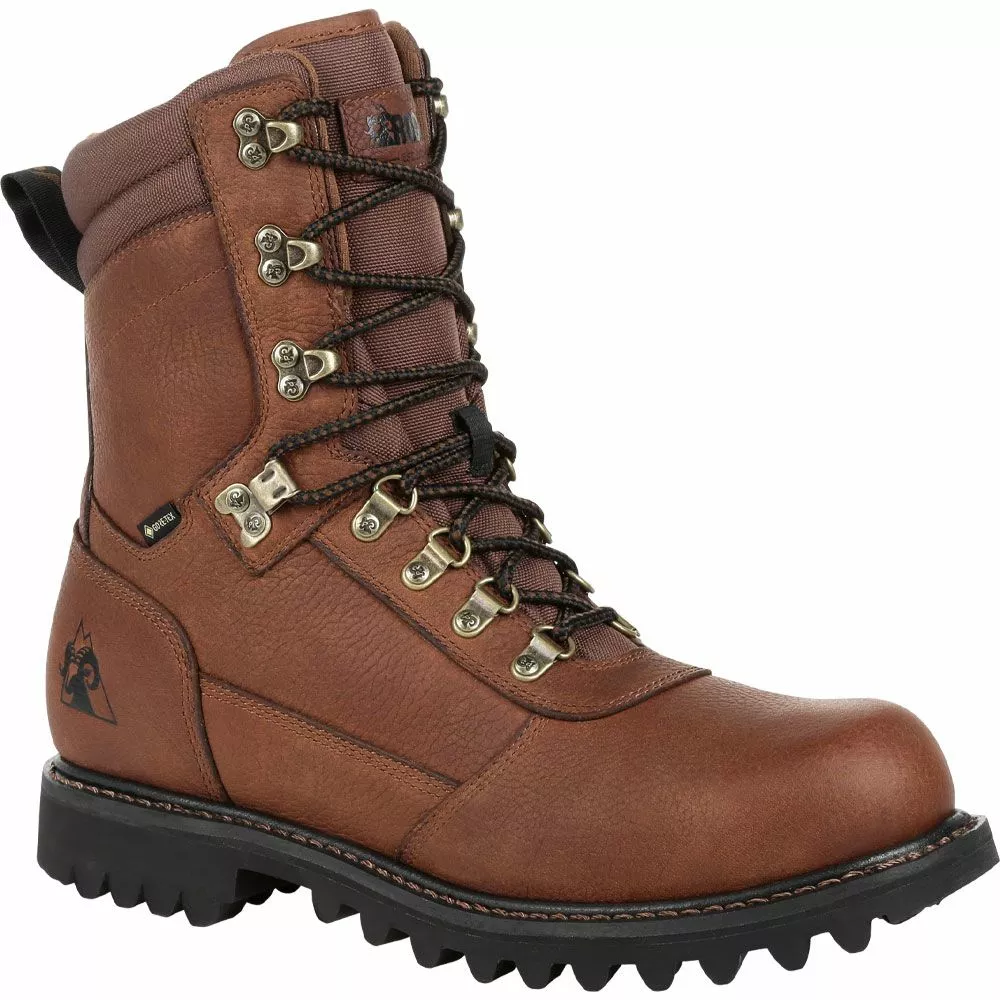 Rocky RKS0437 Winter Boots – Mens. Take on the great outdoors in Rocky’s Ranger mens pull on hunting boots. GORE-TEX waterproofing blocks moisture, ensuring that your feet stay dry. The boot’s Goodyear welt construction enhances its water resistance and support, along with a fiberglass shape integrated into its design. The brand’s EnergyBed LX footbed with memory foam cushioning delivers all-day comfort. Beautiful chestnut-hued leather and antique brass hardware make the Ranger boot a quintessential classic.
