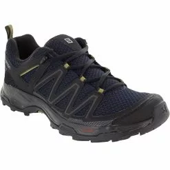 Salomon Pathfinder Mens Hiking Shoes. Men’s hiking shoes are often rugged looking boots, but the Pathfinder takes its design cues from the more relaxed styling of athletic shoes. The superior quality of the materials complements the casual design of the shoes. Leather and mesh uppers offer excellent breathability while the deep grooves in the rubber outsoles provide exceptional traction and durability.