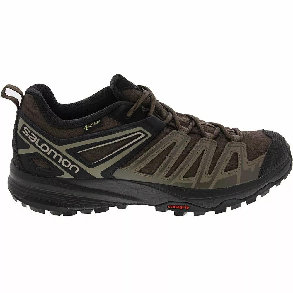 Salomon X Crest Gtx Hiking Shoes – Mens. Feet need to be protected during long walks in the woods. Thankfully, these mens hiking shoes have reinforcement near the feet to keep out sticks and rocks. The tongue, which is connected to the upper on each side, also helps block debris. The feet should stay dry, as well, due to the water-repellent material and the GORE-TEX membrane. The cushioned midsole and 3D mesh keep the feet comfortable while allowing them to breathe.