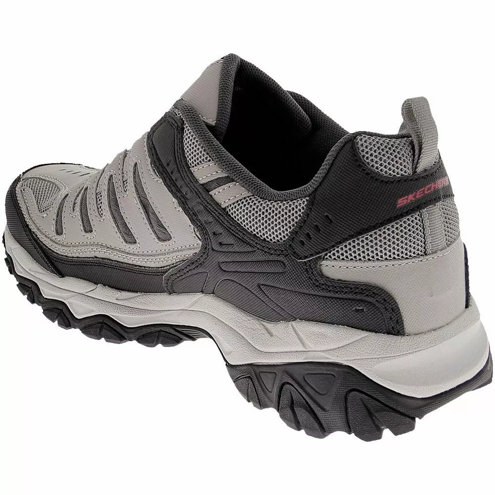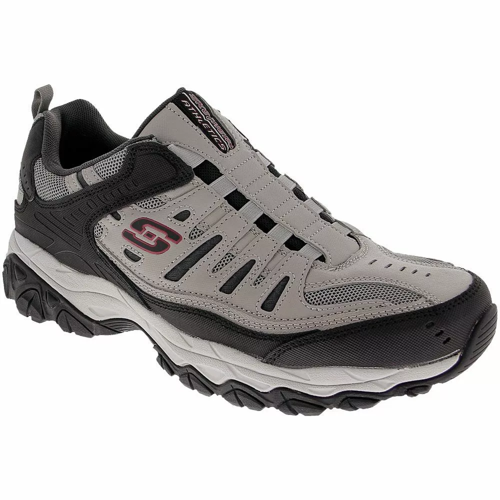 Skechers After Burn M.Fit Mens Hiking Shoes. Great for both running errands and getting in your daily walk, these sporty sneakers feature a durable leather upper and cooling mesh panels on top, as well as a flexible and supportive sole with plenty of traction. A removable Air Cooled Memory Foam insole provides customized comfort and cushioning. The lightweight design and slip on styling make these shoes a great choice for everyday wear.